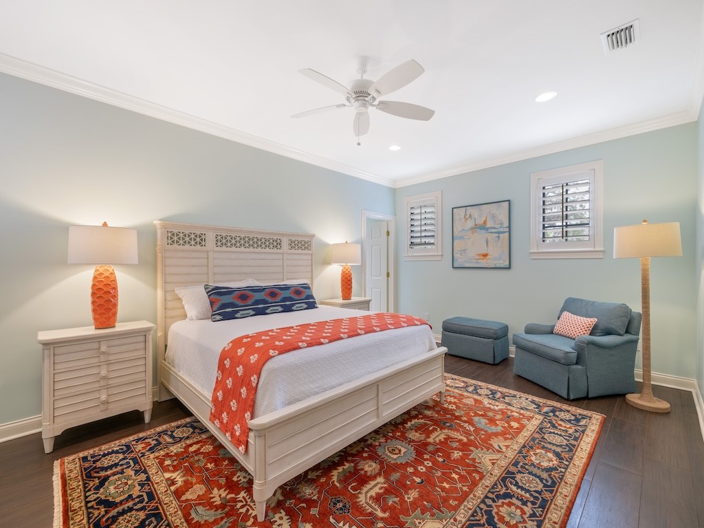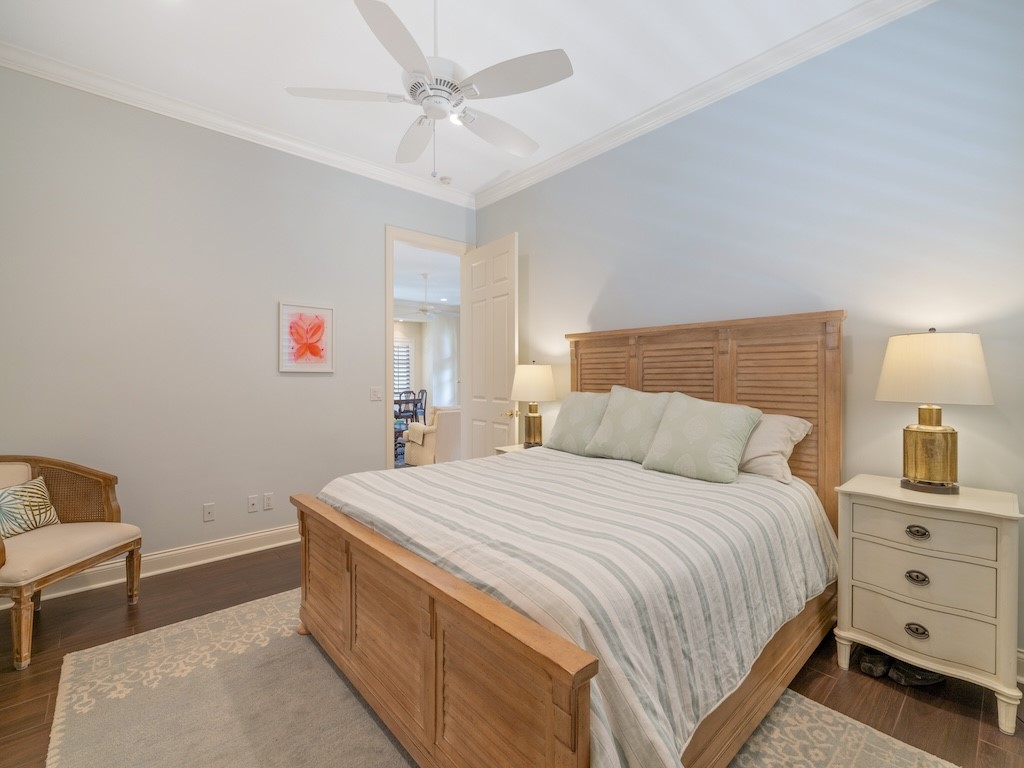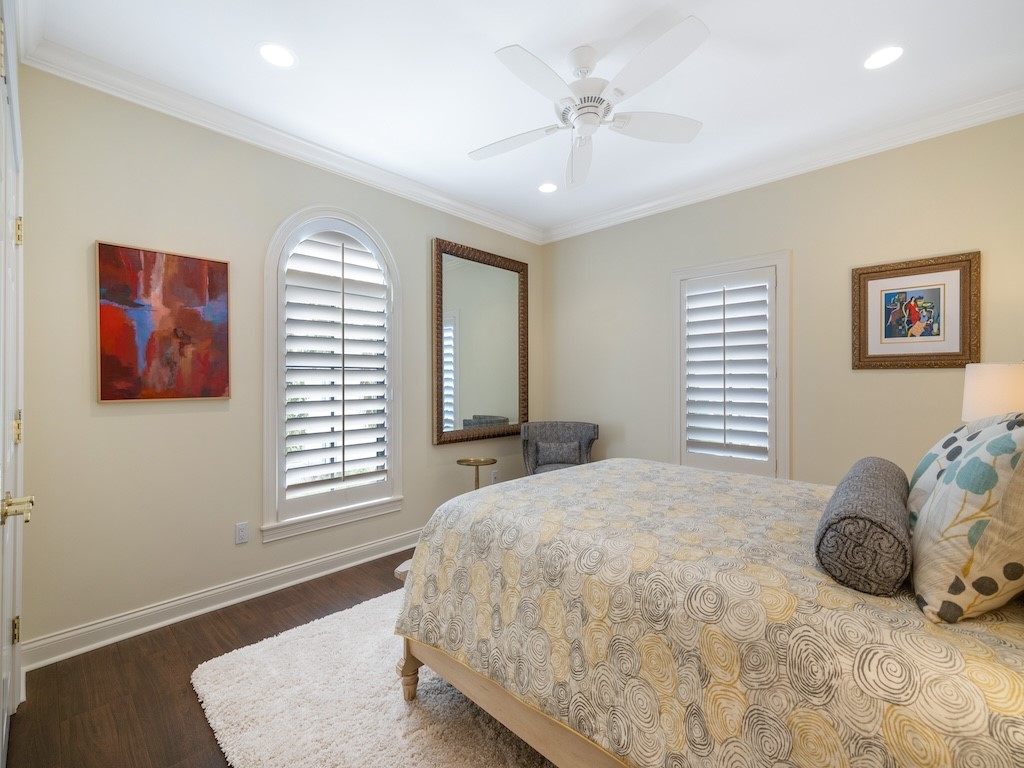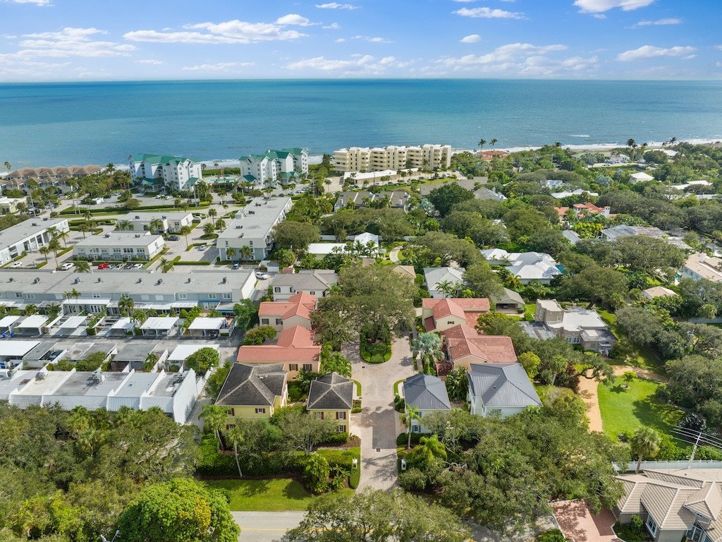 Located in The Village, a picturesque community of 9 homes, this beautifully updated residence has a thoughtfully designed floor plan featuring a downstairs primary suite & 2 spacious guest suites, each w/ its own bath. The renovated kitchen features Calcutta marble counters/backsplash & high-end appliances. Banks of French doors on the 1st floor & crown molding throughout with plantation shutters adding timeless appeal. Updates include 2025 roof, newer ACs, & wood-look tile floor on the second level. 2-car garage with an additional dedicated parking spot. Residents enjoy a community pool.
